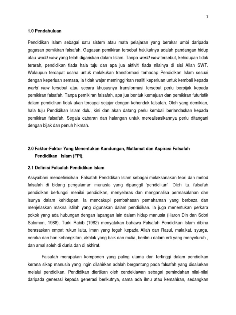 183582865 Falsafah Pendidikan Islam 1 Pendahuluan Pendidikan Islam Sebagai Satu Sistem Atau Mata Studocu