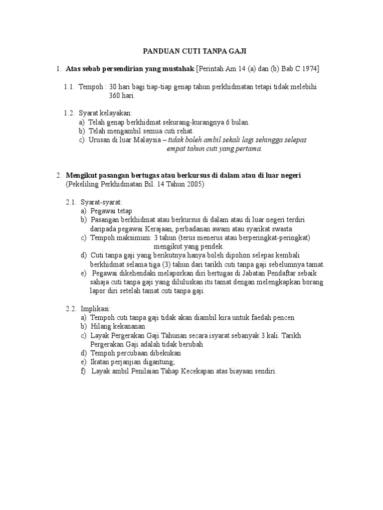 Pdf Spp042009 Cuti Tanpa Gaji Jpa Pdf Uhisyam Sriib Academia Edu
